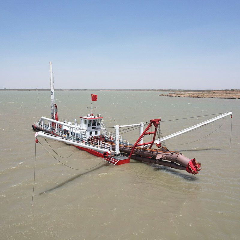 Земснаряд, который мы поставляем, представляет собой самоходный или несамоходный портативный земснаряд с речным фрезой. Корпус имеет разборную и коробчатую конструкцию. Его тип демонтажа можно легко собрать на рабочем месте и транспортировать автомобильным, железнодорожным и контейнерным транспортом соответственно, что удобно при установке и перемещении рабочего места с одного на другое. Энергосистема может быть спроектирована как электрическая система или система привода дизельного двигателя в соответствии с требованиями клиентов. Оборудование на земснаряде для выемки песка состоит из сильфонов: передвижное устройство, подъемное устройство для лестницы фрезы, буровые станки и палубный кран. Рабочий процесс заключается в следующем: режущая головка разрезает песок и ил под водой до смеси шлама, затем через землечерпалочный насос подает в трубопровод на всасывающий земснаряд фрезы для выемки песка; в конце суспензия будет сброшена по трубопроводу на сушу в необходимое место.